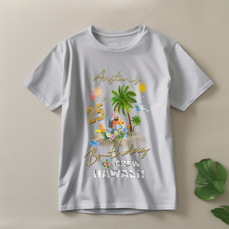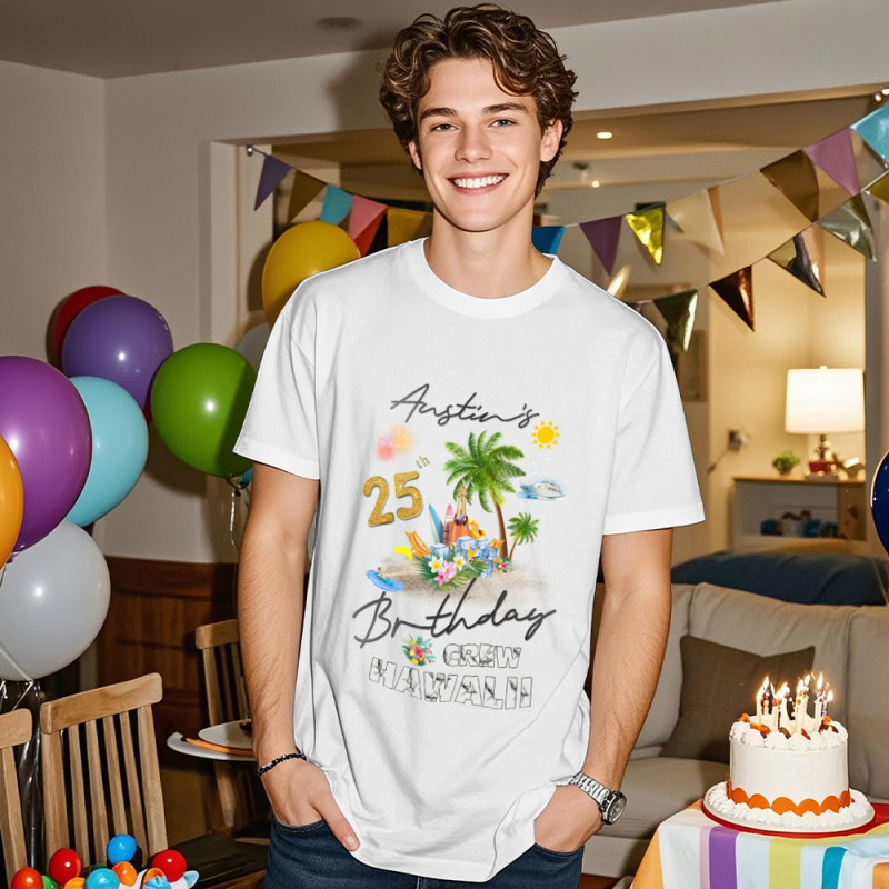 Home / Celebrating My Birthday in Hawaii Personalized Hawaii Birthday Crew Shirts Birthday Shirt Hawaiian Family Birthday Party Tees