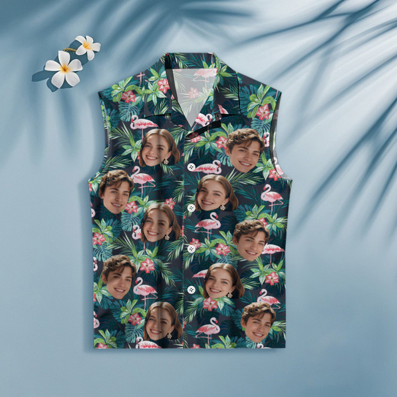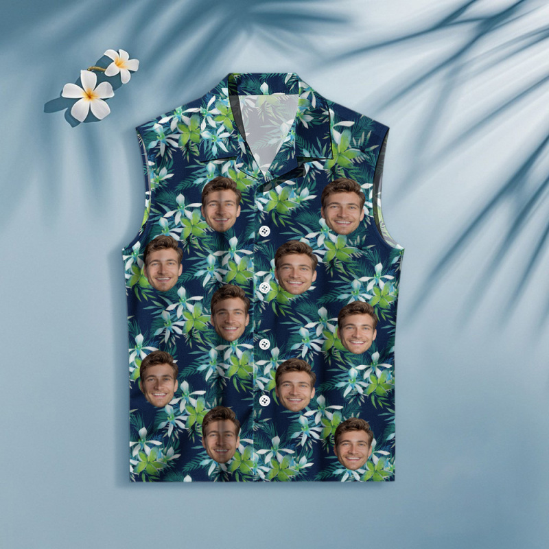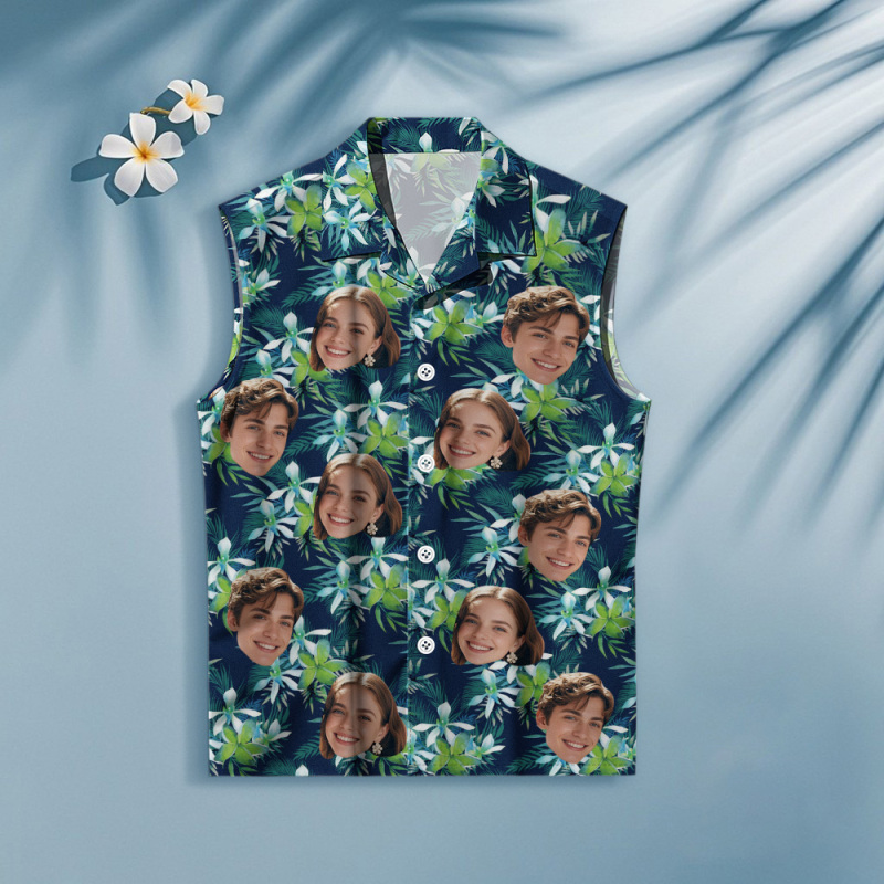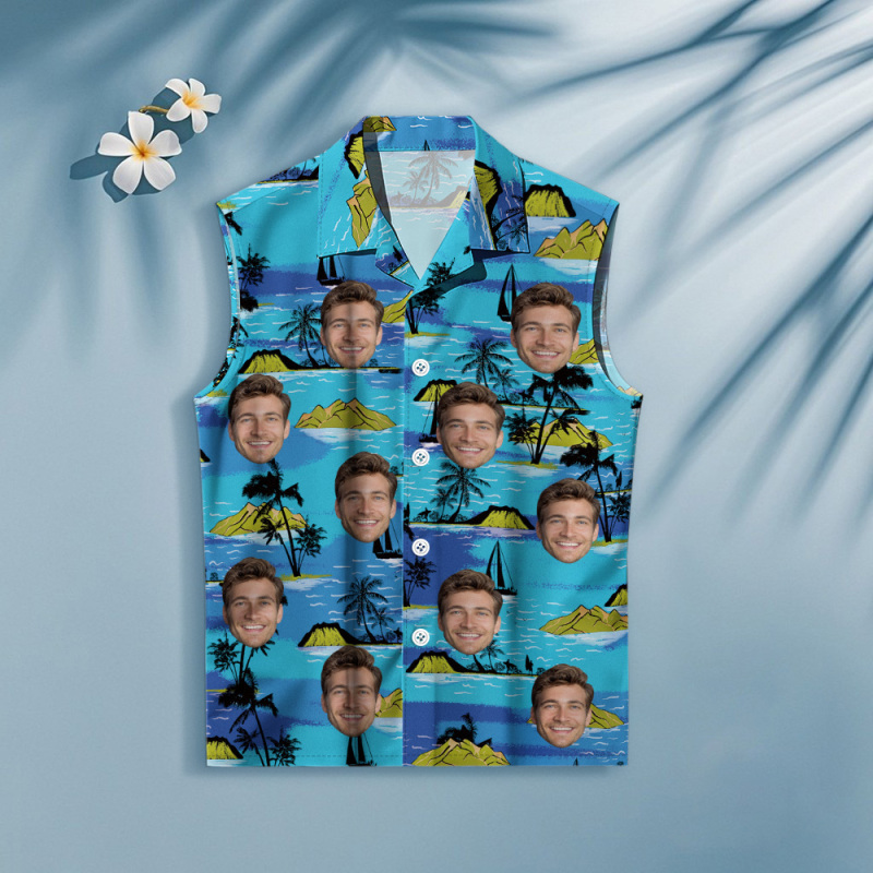 Custom Face Sleeveless Shirt Personalized Photo Women's Coconut Tree Hawaiian Shirt Gift