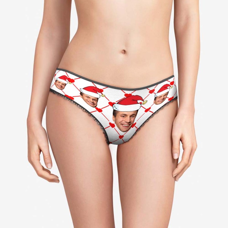 Christmas Gift Custom Face Underwear with Boyfriend Picture Personalized Christmas Hat Pattern Women's Shorts