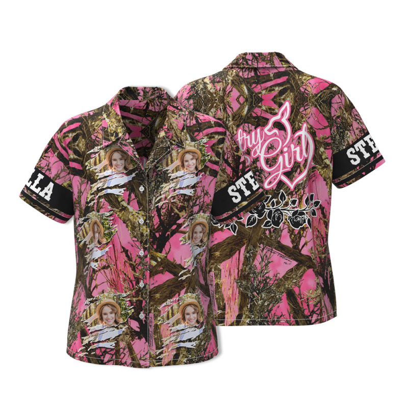 Custom Hawaiian Shirt With Face Personalized Hawaiian Shirt Logo All Over Print Pink Camouflage Hawaii Shirt For Her