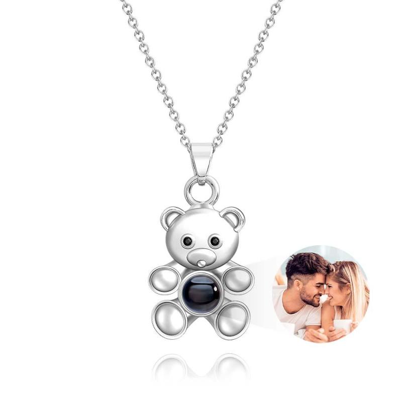 Imagine their surprise when they discover the secret hidden within this adorable teddy bear design. Crafted from high-quality sterling silver, this necklace features a tiny, intricately detailed teddy bear pendant. But here's the magic: peek inside, or shine a light through the pendant, and it will project a personalized photo of your choosing!