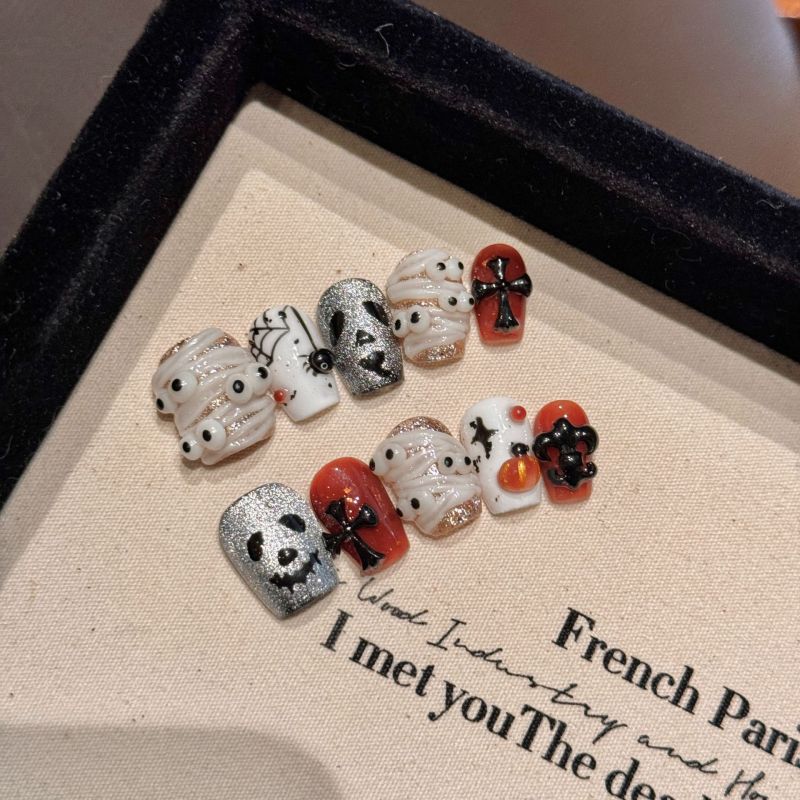 Halloween Party Press-On Nails Unique Pumpkin Nail Art Scary & Fun Fake Nails
