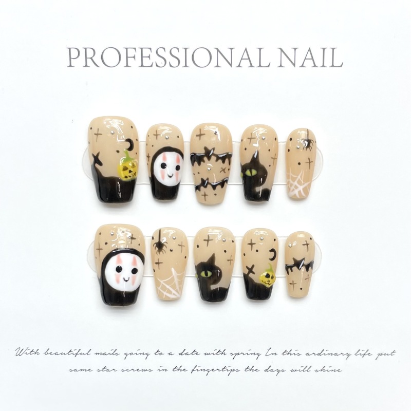Get ready to slay the Halloween season with our exclusive(Playful Pumpkin) press-on nail set! Designed to capture the fun and eerie spirit of the holiday, these nails are your ultimate accessory for any party, trick-or-treating, or festive photoshoot. Forget messy salons—achieve a flawless, long-lasting manicure in minutes, right at home!