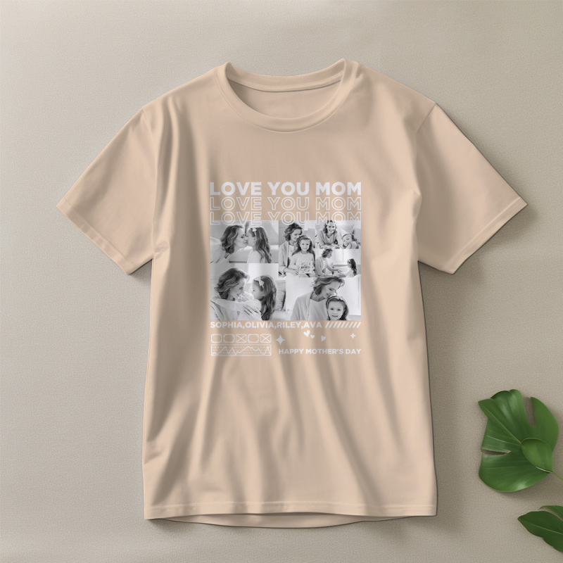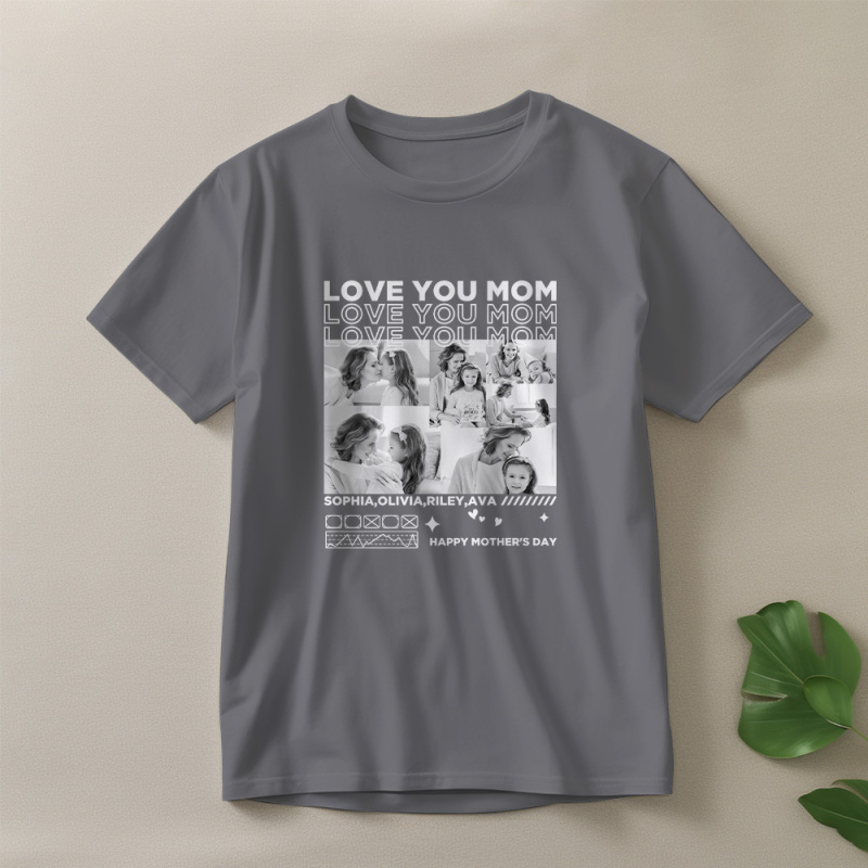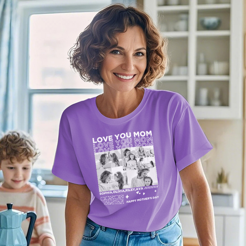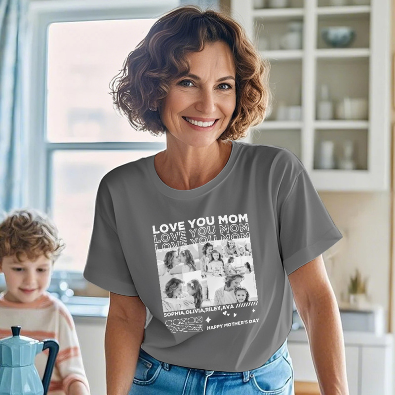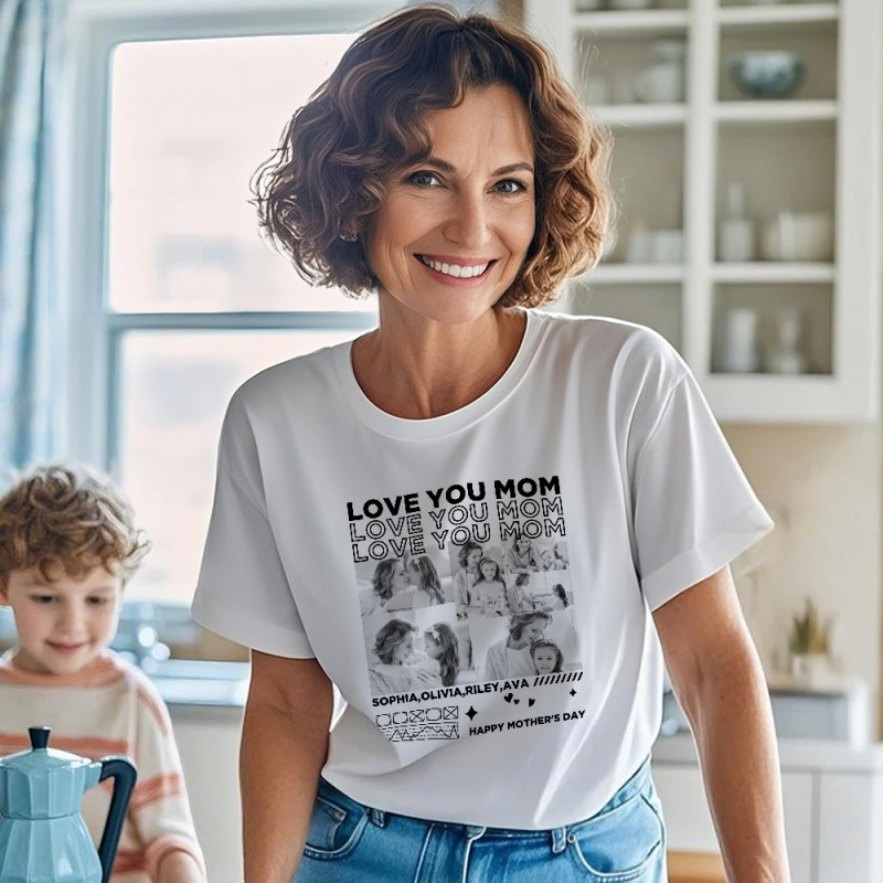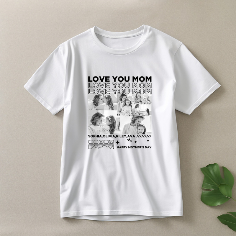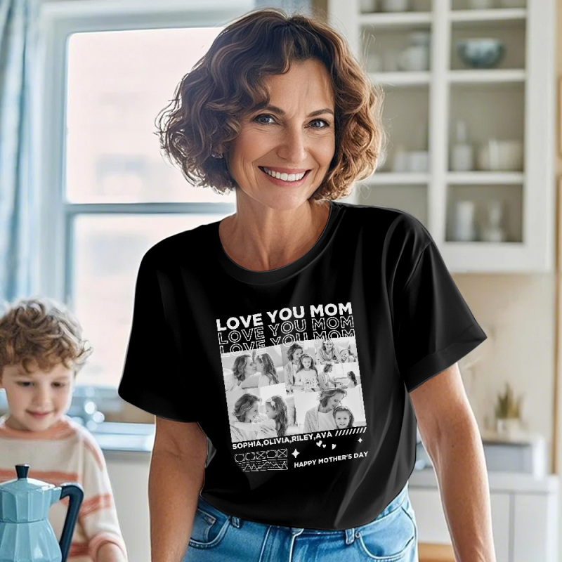 Personalized T-shirt Love You Mom with Custom Photos Chic Design Perfect Mother's Day Gift