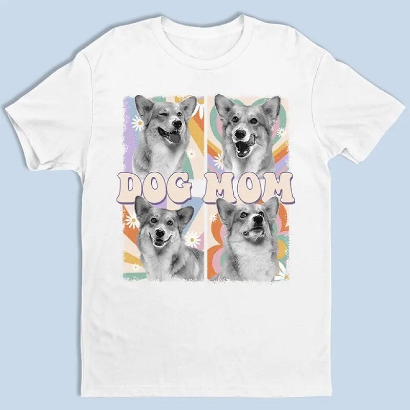 Personalized T-shirt Pet Mom Colorful Lattice Photo Design Attractive Gift for Pet Lovers Gift for Mother's Day