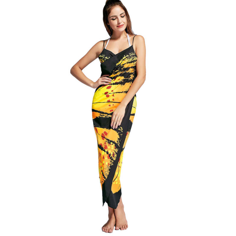 Home / Beach Wrap Bikini Cover Ups Butterfly Pattern Spaghetti Strap Sarongs Beach Backless Wrap Dresses