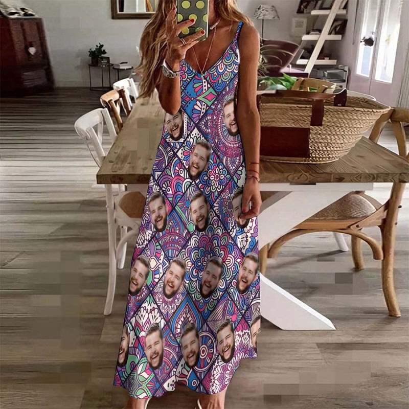 Custom Face Dress Boho Chic Flower Pattern Personalized Beach Dress