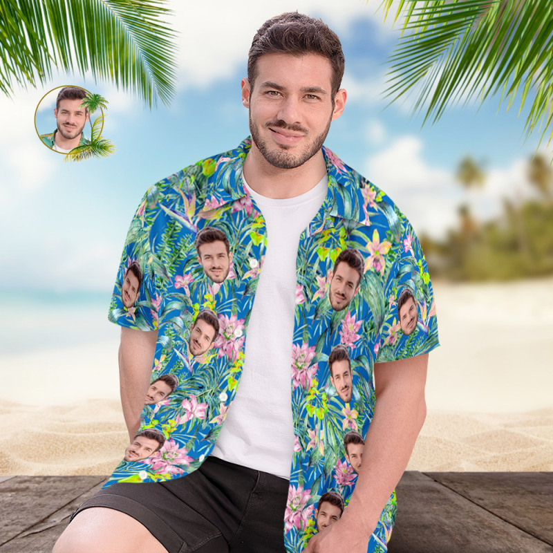 All over print hawaiian shirt personlized with face, shop party wearing for traveling or company group building activity.