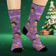 Custom Face Socks Personalized Photo Purple Socks Cartoon Christmas Elements