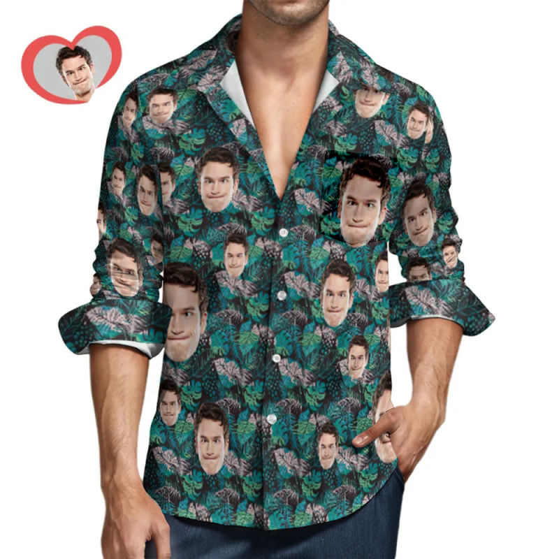 Home / Custom Face Summer Leaves All Over Print Long Sleeve Shirt