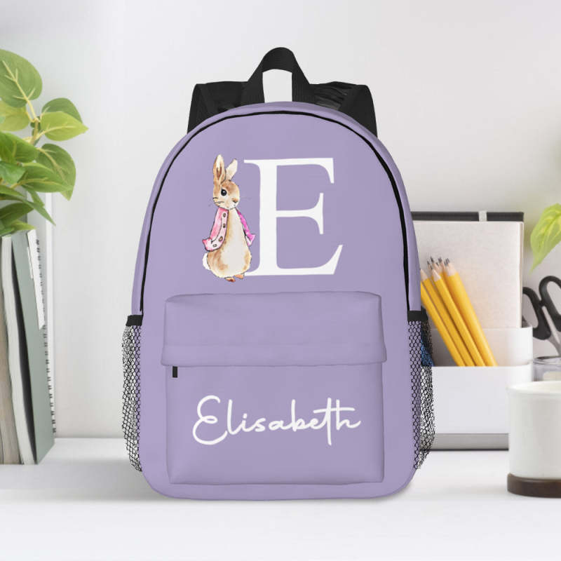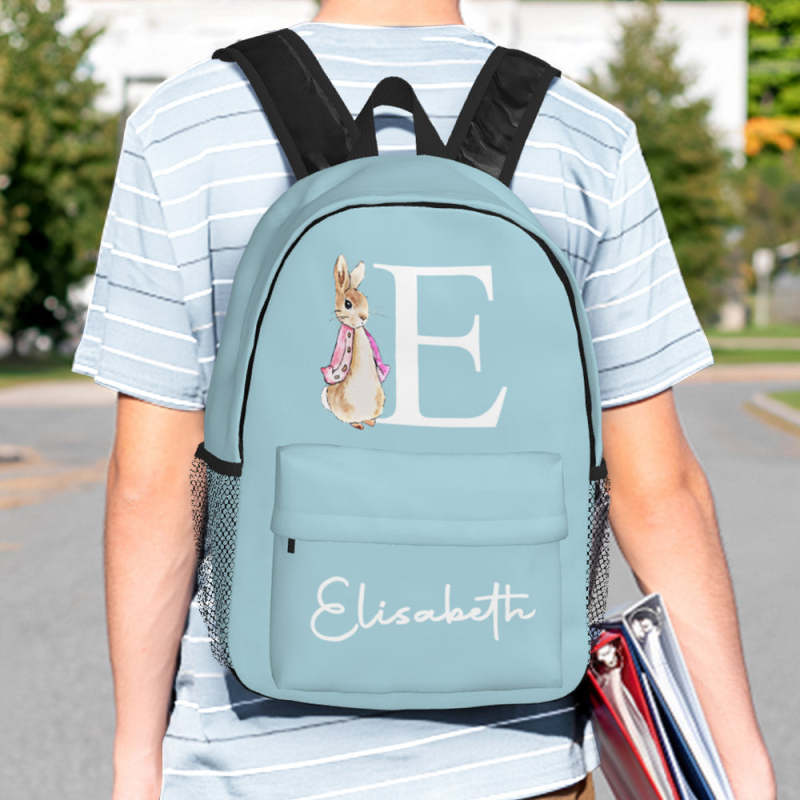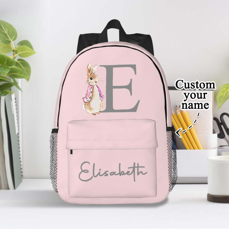Custom Name Initial Backpack Personalised Rabbit Design School Bag for Kids