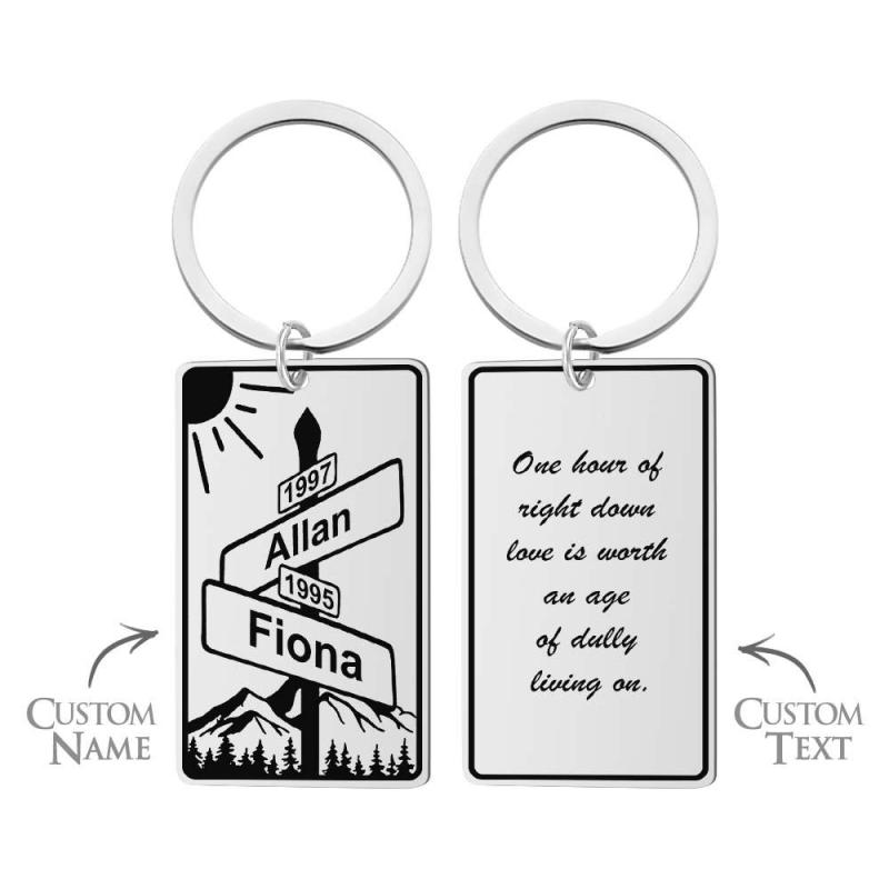 Home / Custom Name Text Street Sign Keychain Personalized Intersection of Love Anniversary Gift For Couples