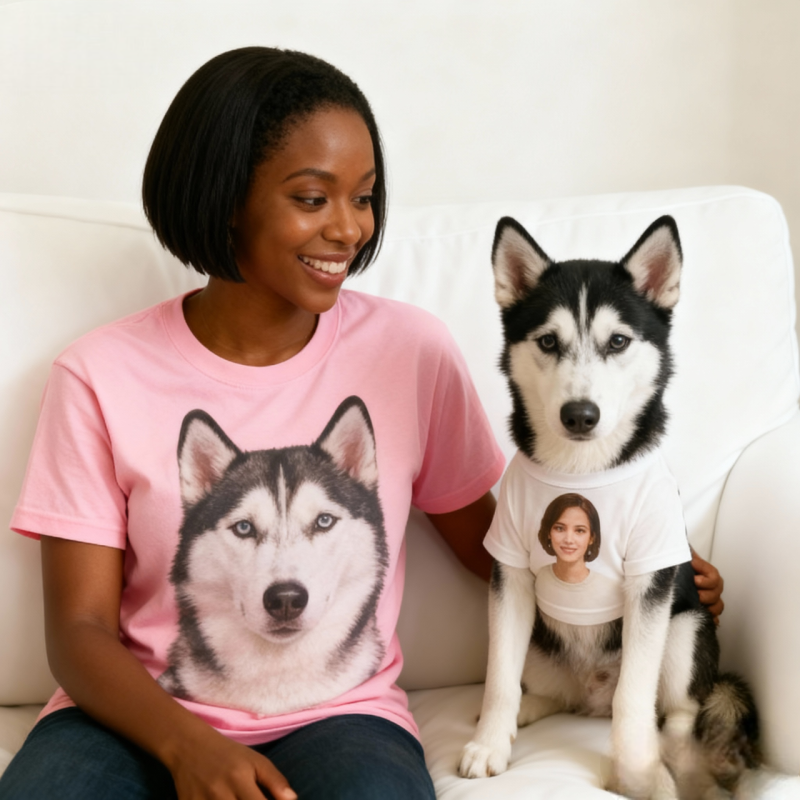 Our Custom Pet Matching Shirt lets you and your pet twin in style — perfect for Christmas photos, family gatherings, or cozy winter days together.