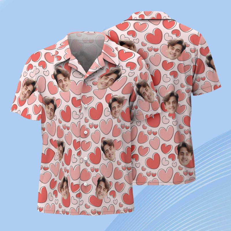 Custom Photo Heart Hawaiian Shirt Personalized Face Holiday Tropical Pattern Shirt Party Gift Summer Gift