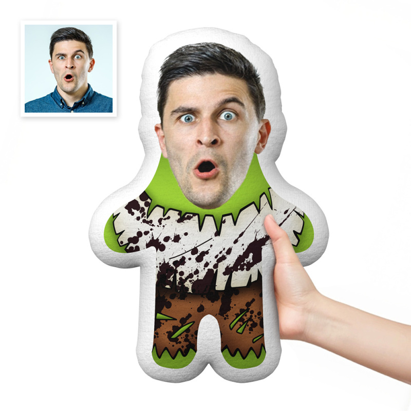 Green Zombie Halloween Minime Throw Pillow Custom Face Teddy Personalized Photo Minime Pillow Gift for Fun
