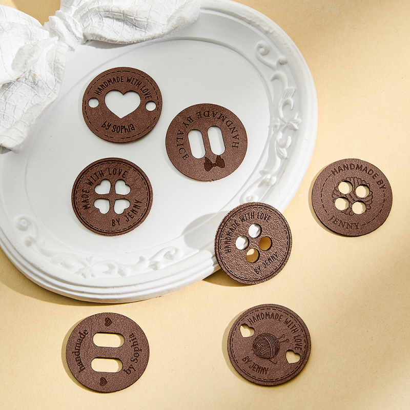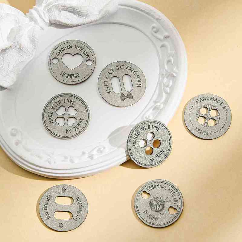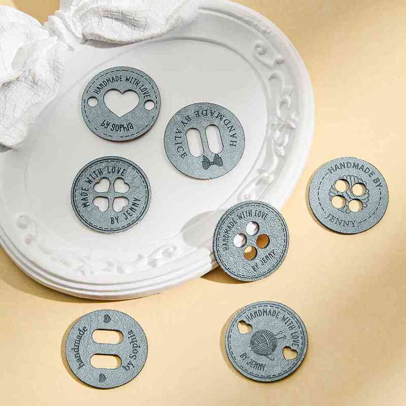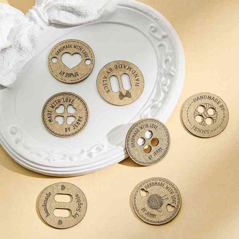Personalized Handmade with Love Leather Button Set of 10 Clothing Hat Labels with Engraved Name Birthday Gift for Knitting Crocheting Lovers