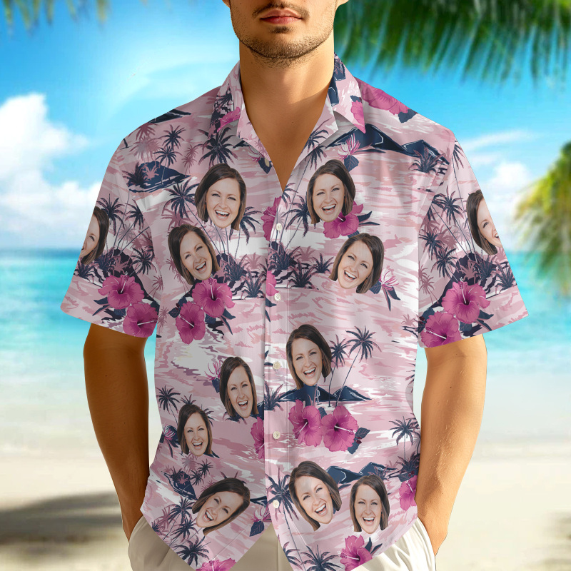 • Custom hawaiian shirts face all over print aloha beach shirt for men