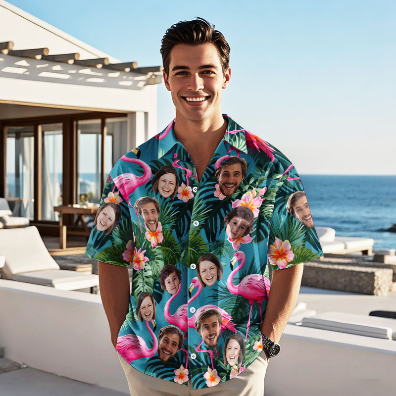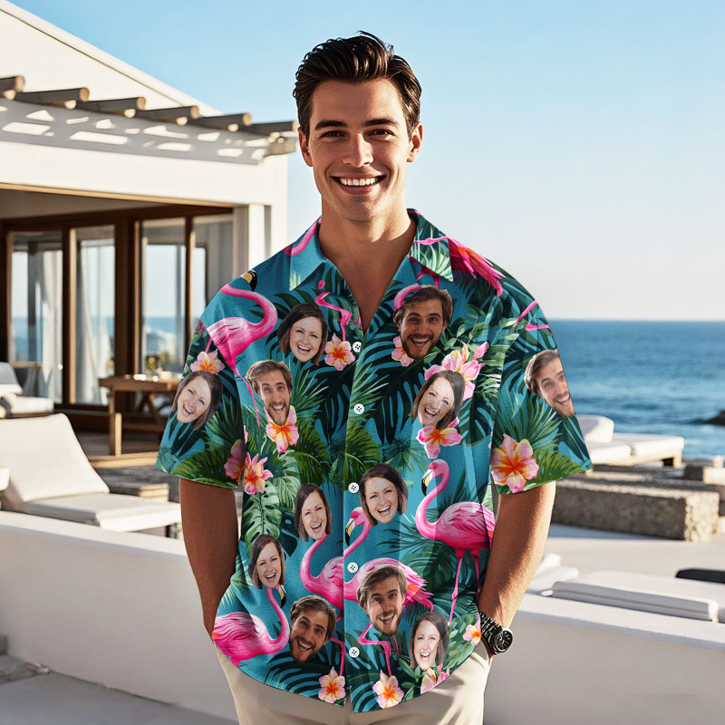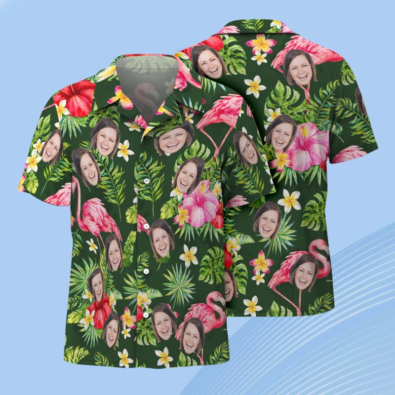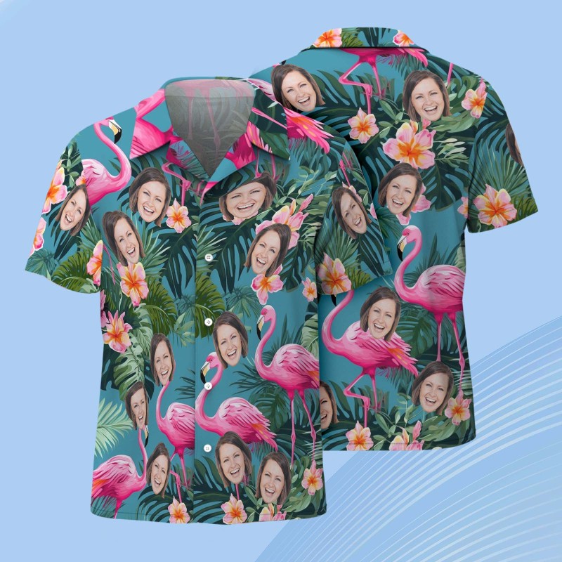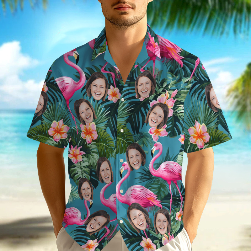 Custom Face Hawaiian Shirt Personalized Pink Flamingo Pattern Hawaiian Shirt Father's Day Gift