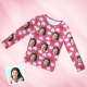 Custom Face Pink Pajamas Personalized Round Neck Love Funny Heart Pajamas For Women Valentine's Day Gift