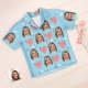 Custom Face Short Sleeved Pajamas Personalized Photo Sleepwear Women Summer Blue Pajamas Happy Mother's Day Gift