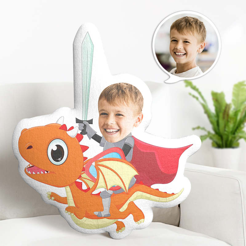 Custom Photo Face Pillow Cartoon Dinosaur Knight Pillow Personalized Photo Custom Shaped Pillow
