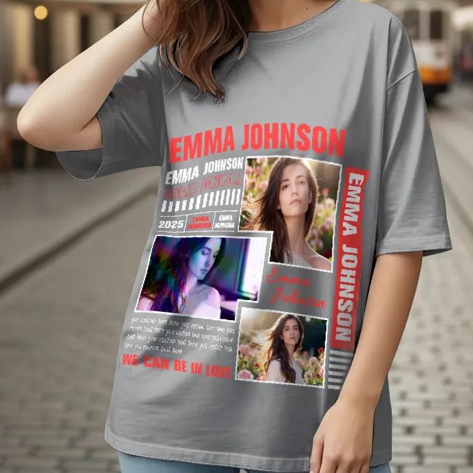 Custom Photo Vintage Tee Rap Star Shadow Shady Vibes Personalized Name T-shirt for Couples On Valentine's Day