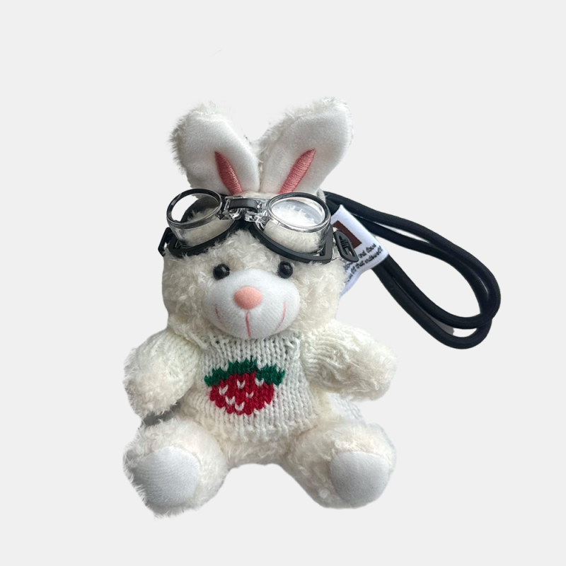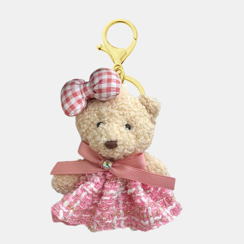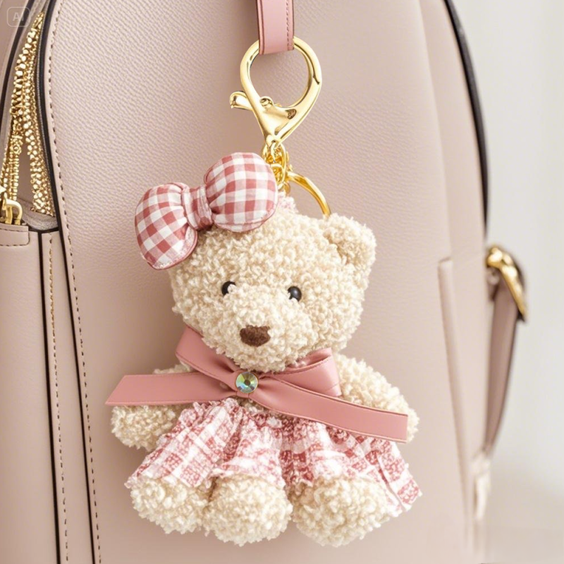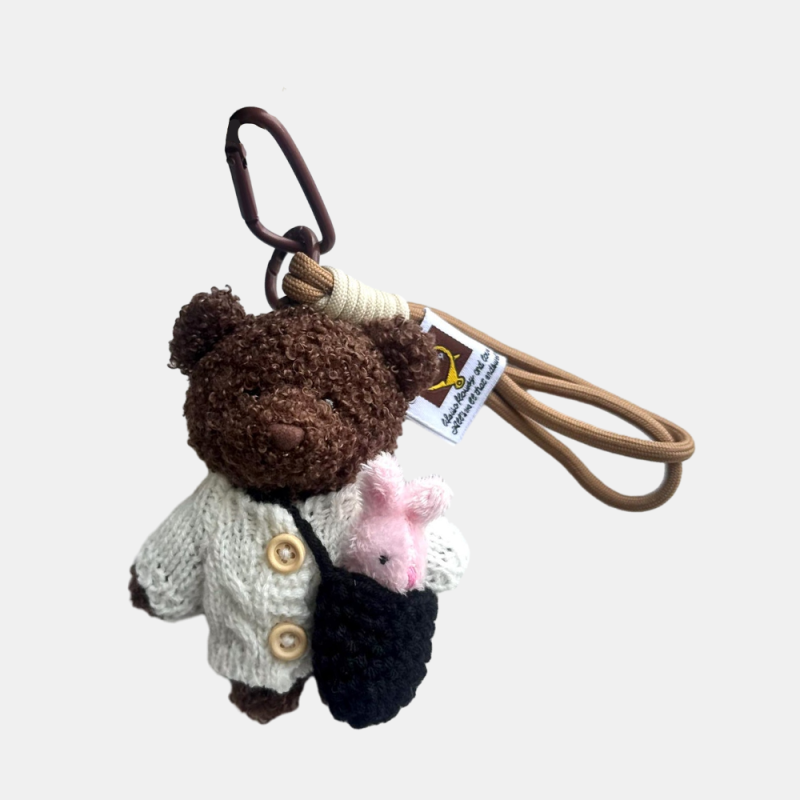 Home / Cute Teddy Bear Plush Bag Charm, Fluffy Bear With Overalls and Bunnies, Plushie Keychain, Soft plushie bag decor, Toy handbag accessory
