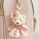Cute Teddy Bear Plush Bag Charm, Fluffy Bear With Overalls and Bunnies, Plushie Keychain, Soft plushie bag decor, Toy handbag accessory