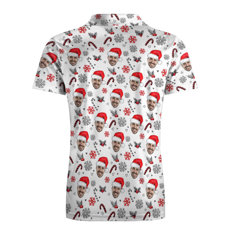 Home / Men's Custom Face Shirt Personalized Face With Christmas Hat Pattern Golf Polo Shirts