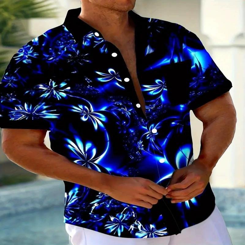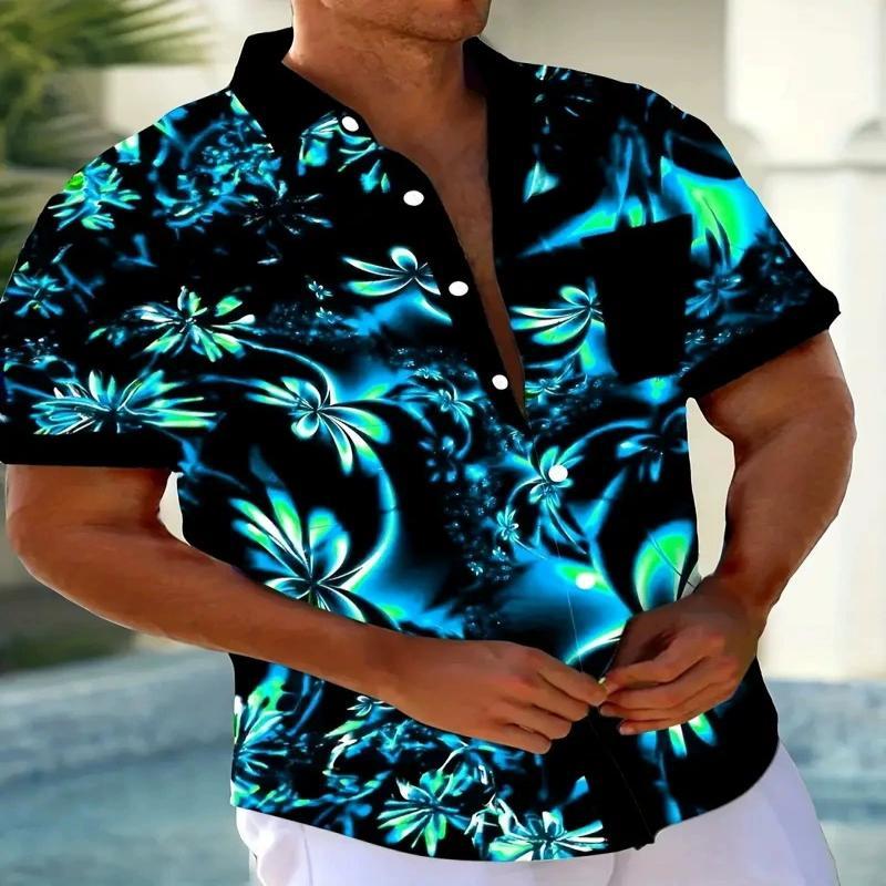 Home / Short Sleeve Men's 3D Floral Print Hawaiian Fluoresceent Gradient Art Button-up Pocket Shirt for Spring and Summher Holiday Wearing, Outdoor Cloth