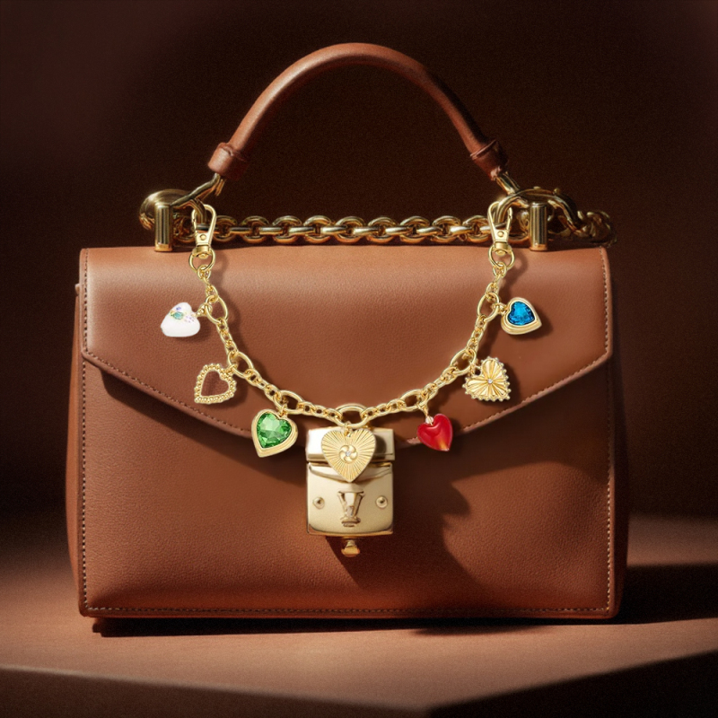 Bag Charm for Women With Red Rhinestones Trendy Gold Bag Heart Charms Key Pendant Trendy Purse Charms Car Jewelry
