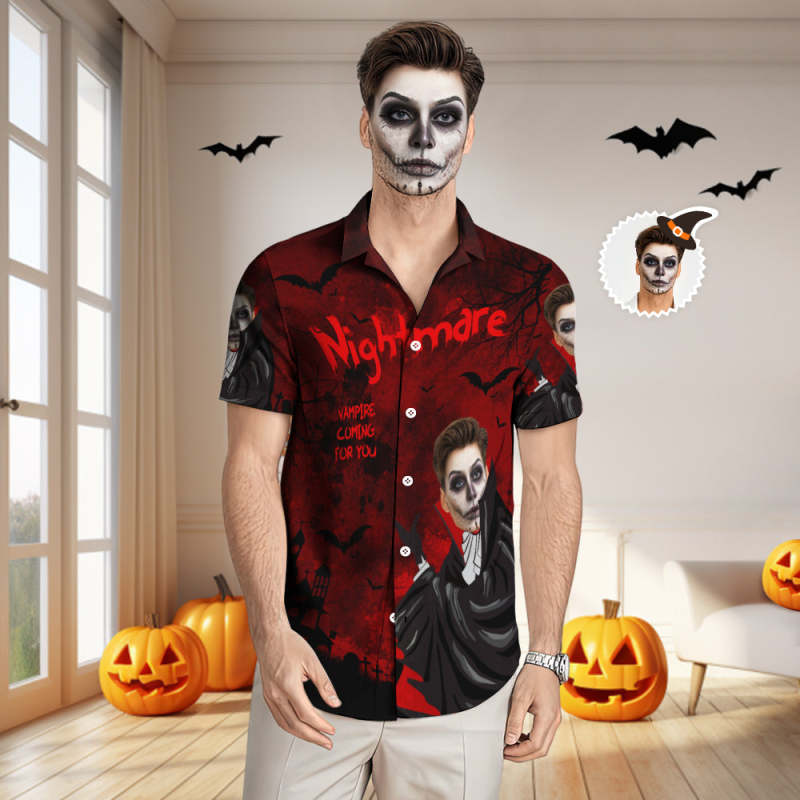 Custom Face Hawaiian Shirt Men's All Over Print Halloween Aloha Shirt Gift - Nightmare vampire
