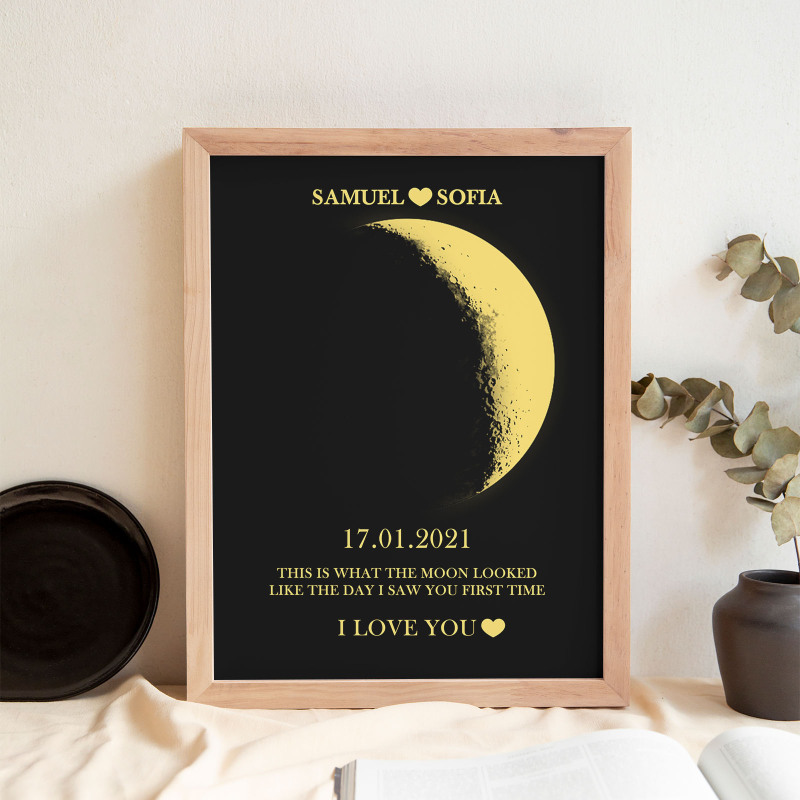 Learn the lunar phases and personalized names with our Custom Moon Phase and Names Wooden Frame. Enter a birth date to experience the moon's cycle and find out what it's like to live on the moon. With eight distinct phases and customizable text, this frame is an educational and unique addition to any space enthusiast's collection.