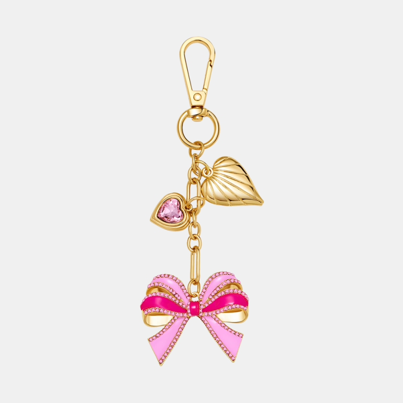 Gold Bag Charm for Women with Pink Bow Colorful Heart Handbag Key Pendant Fashion Keychain Jewelry Gift