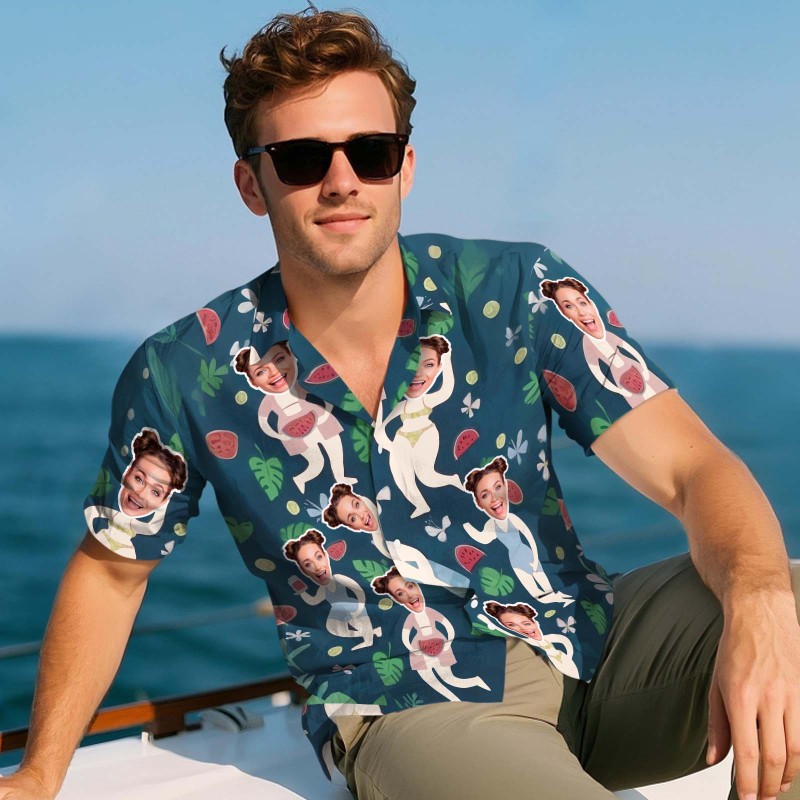 Personalized Photo Hawaiian Shirt Custom Tropical Pattern Shirt Summer Gift Cartoon Lover Face Shirt