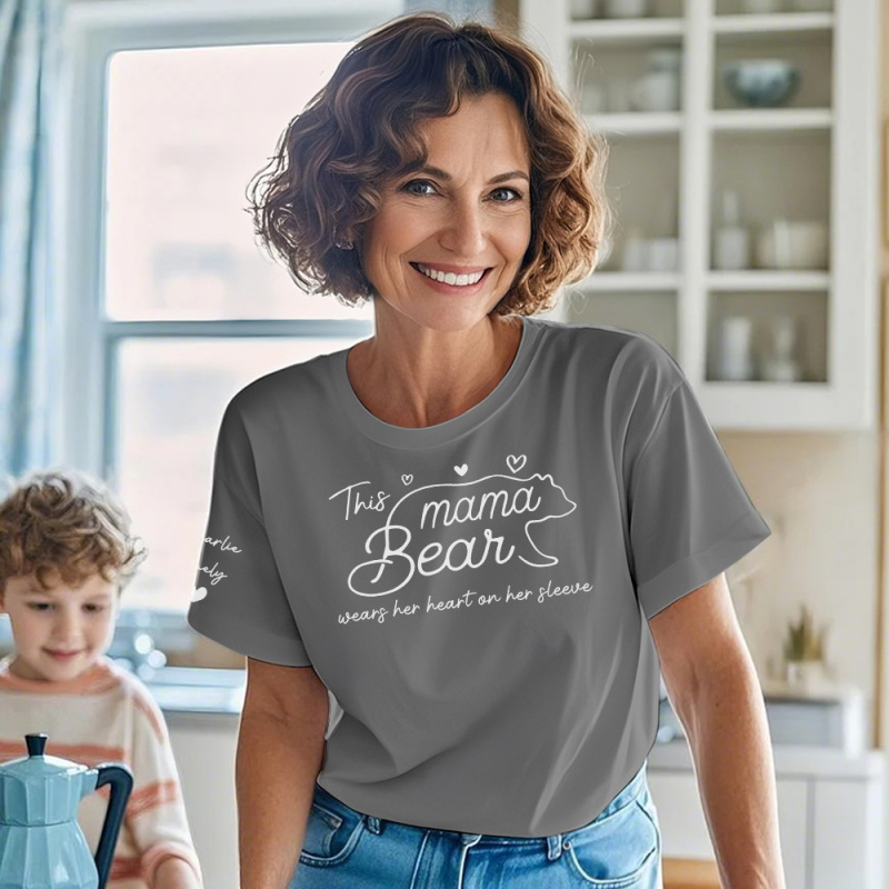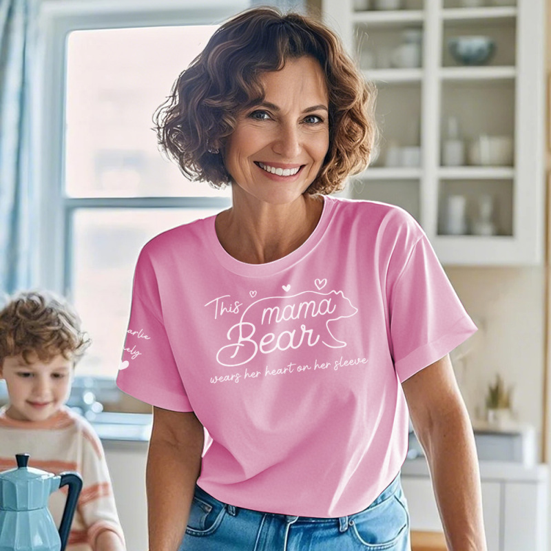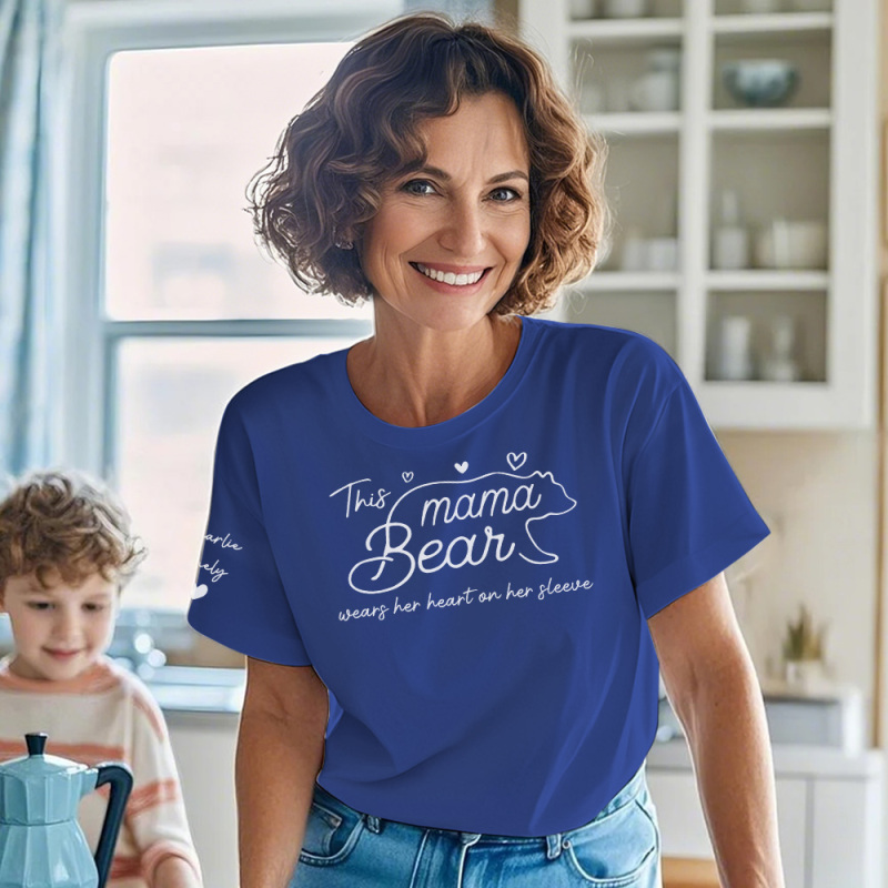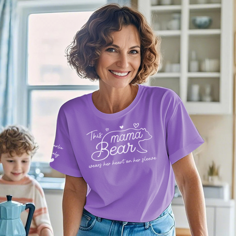 Personalized T-shirt Mama Bear Wears Her Heart On Her Sleeve Adorable Gift for Mother's Day