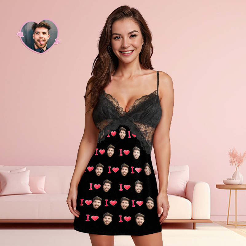 Custom Face Women Lace Sleepwear LOVE YOU Personalized Photo Nightwear Valentine's Day Gift