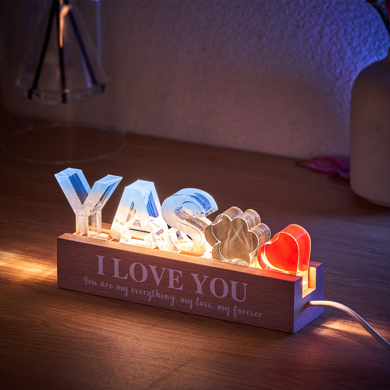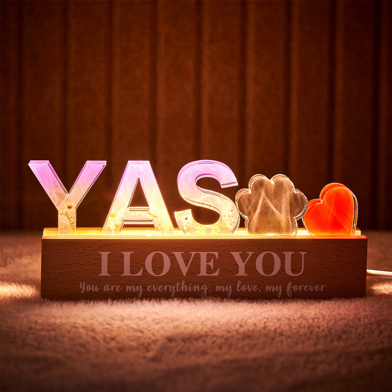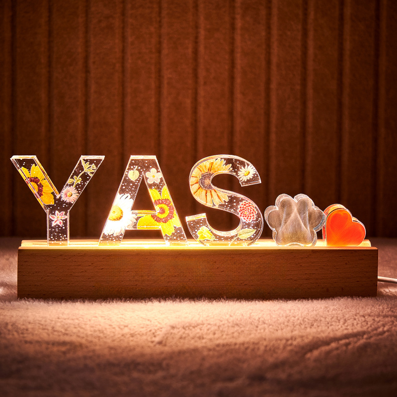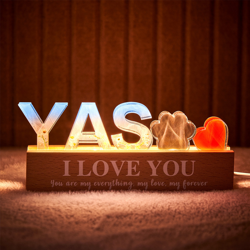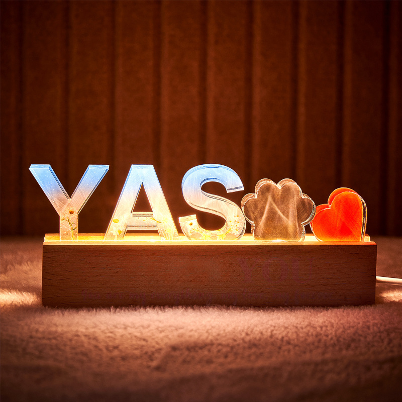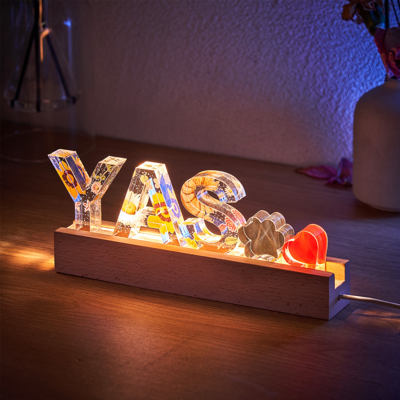 Add a personalized touch to your space with this custom name resin light. Perfect for any room, this unique lamp allows you to engrave your name or a special word of your choice into the resin base, creating a warm and inviting glow. Featuring an elegant floral decoration, it doubles as both a functional light and a stylish decor piece. Whether it’s for a bedroom, office, or a gift, this light makes a beautiful and thoughtful addition to any space.