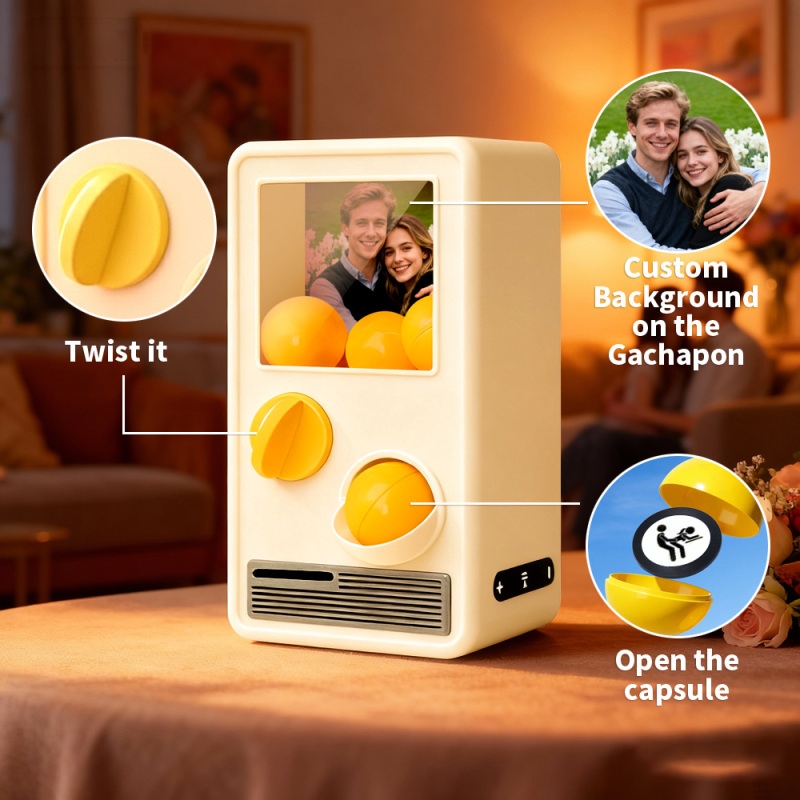 Personalized Gashapon Machine with Custom Photo – Love Notes, Date Ideas & Surprise Cards
