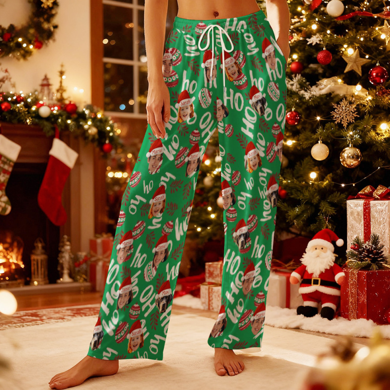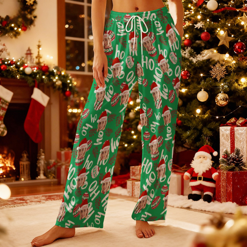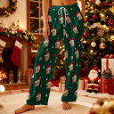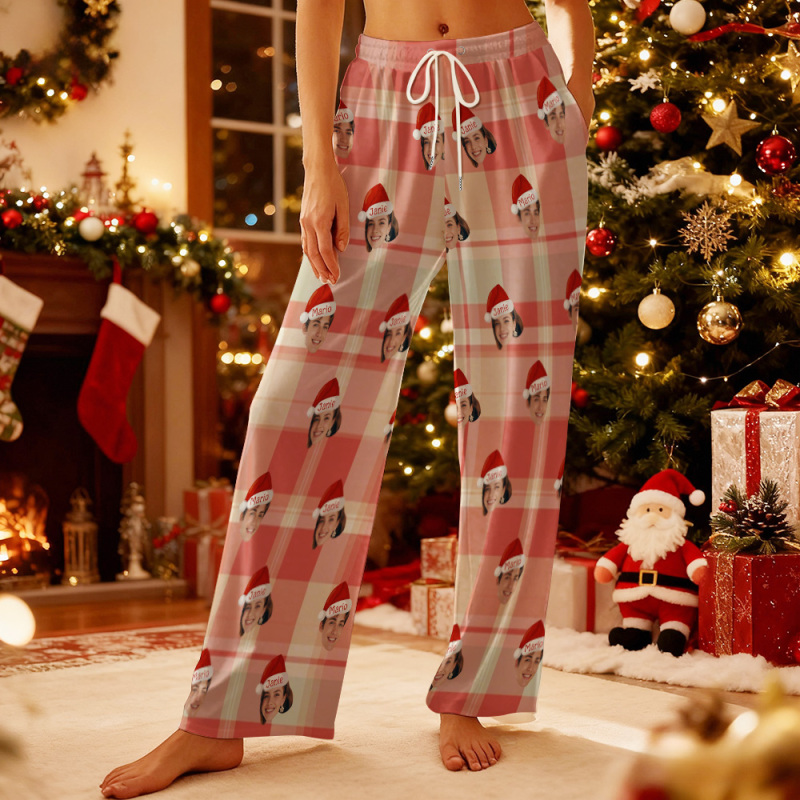 Accueil / Custom Adult Pajama Pants with Pet Picture & Festive Gingerbread Plaid