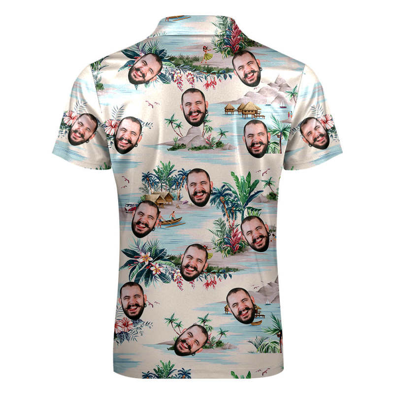 Custom Face Hawaiian Style Polo Shirt with Zipper Men's Polo Shirt for Boyfriend or Husband
