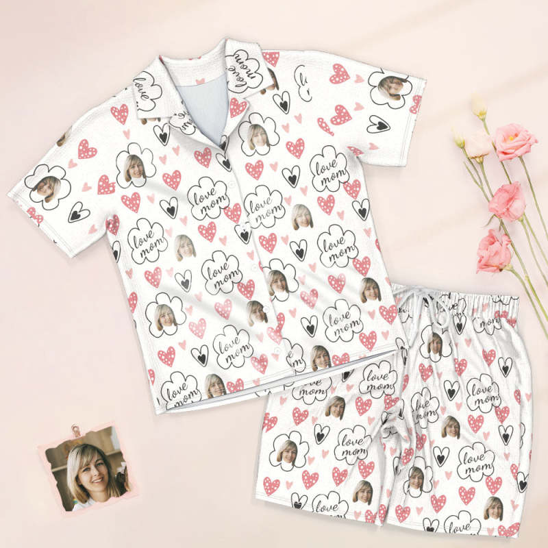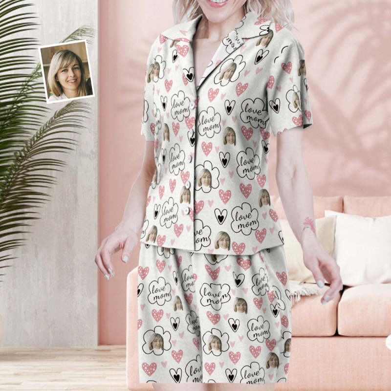Custom Face Short Sleeved Pajamas Personalized Photo Sleepwear Women Summer Pajamas Love Mom