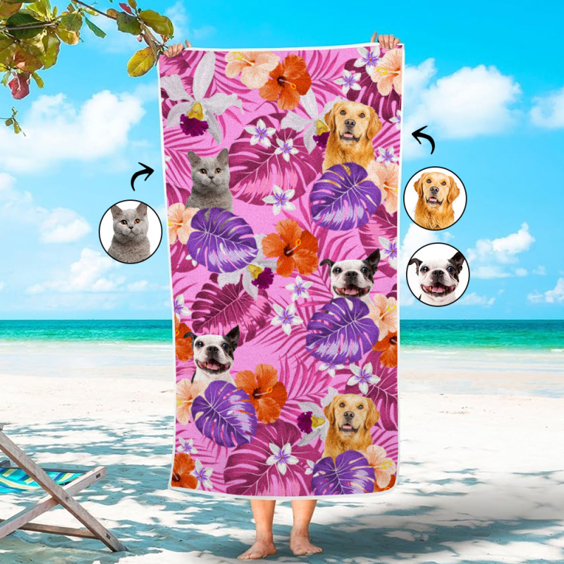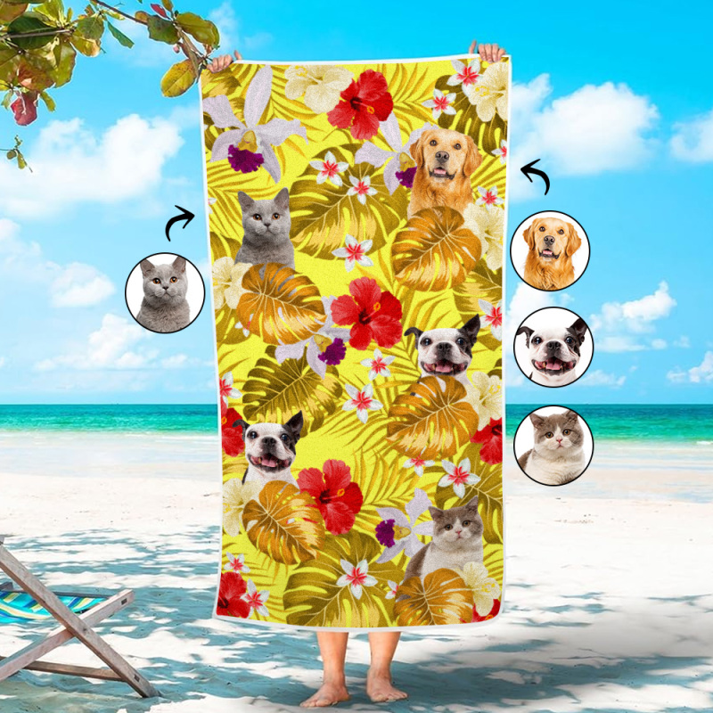 Custom Cat Photo Tropical Style Beach Towel
