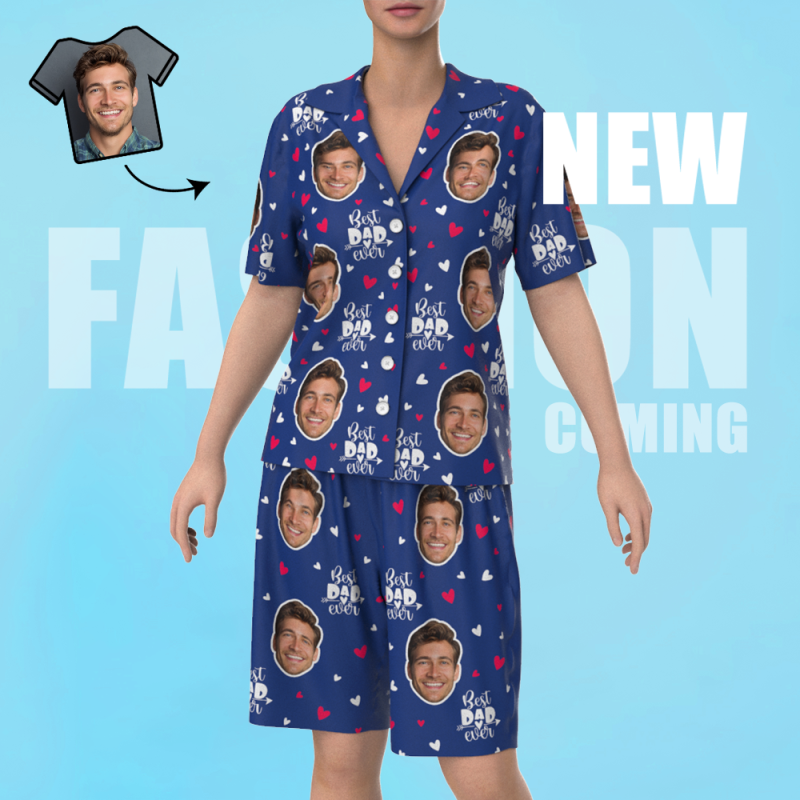 Custom Face Short Sleeve Heart Pajamas Best Dad Ever