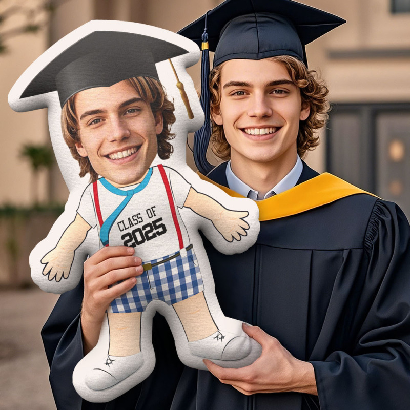 Custom Minime Throw Pillow Graduation Blue Plaid Shorts Vacation Grad Pillow Personalized Photo Minime Pillow For Graduated Students Back to School Gift
