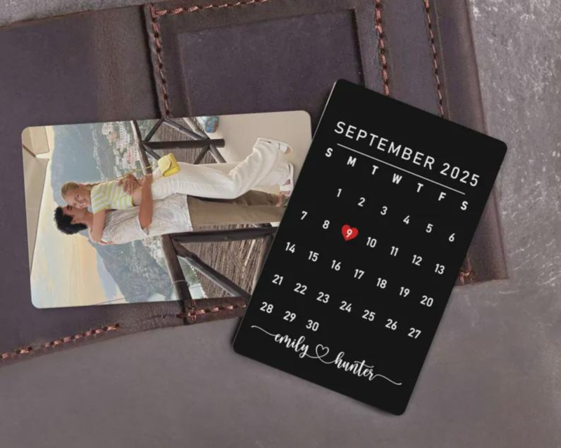 Custom Photo Metal Wallet Card, Personalized Anniversary Gift for Him, Husband Boyfriend Valentines Gift, Calendar Wallet Insert Couple Gift