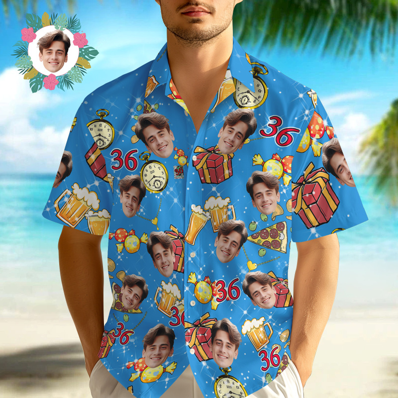 Laman utama / Custom Face Age Hawaiian Shirt Personalized Beer Mug Gift Box Short Sleeve Shirt with Photo Birthday Shirt for Men Birthday Gifts
