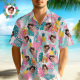 Custom Face Age Hawaiian Shirt Personalized Pineapple Pink Flower Short Sleeve Shirt with Photo Birthday Shirt for Men Birthday Gifts
