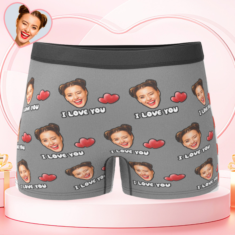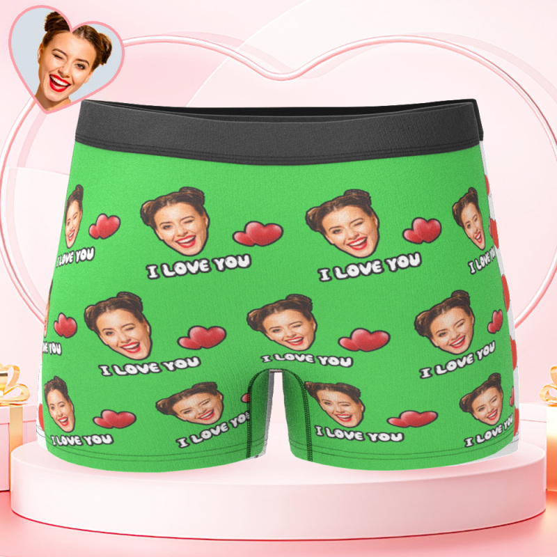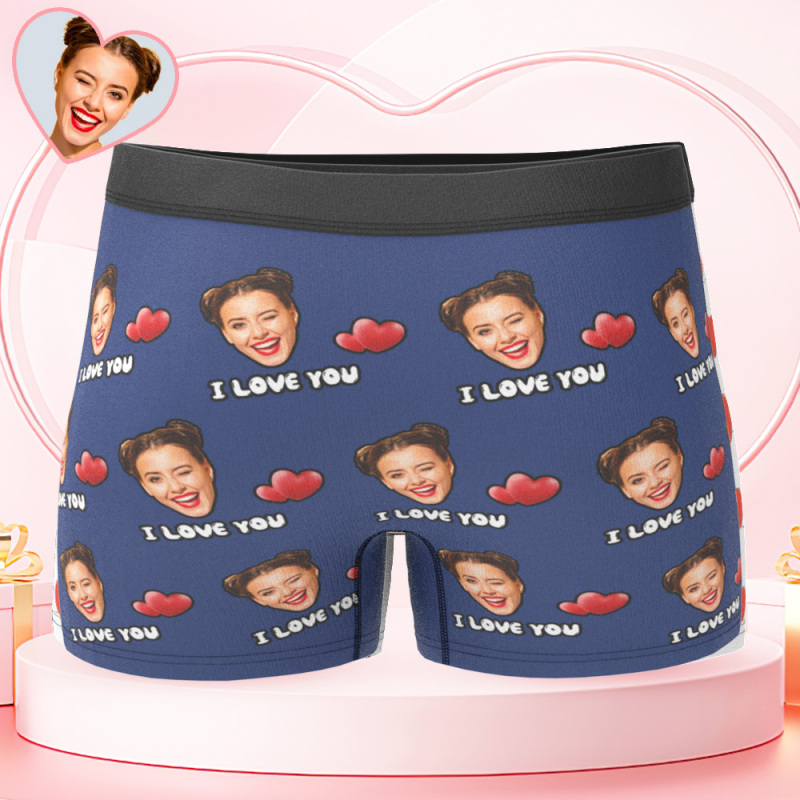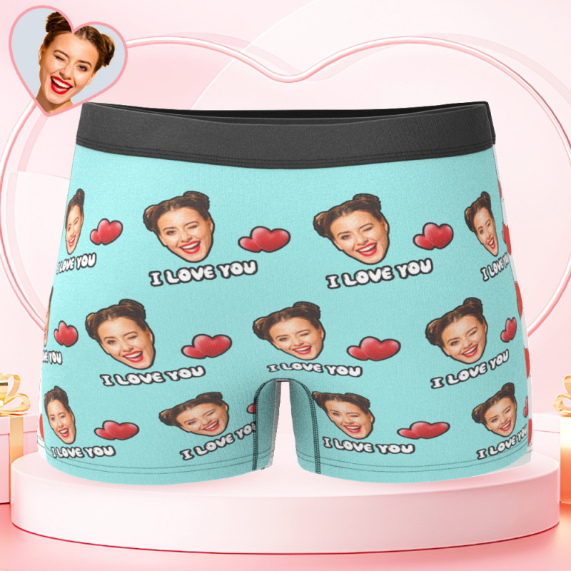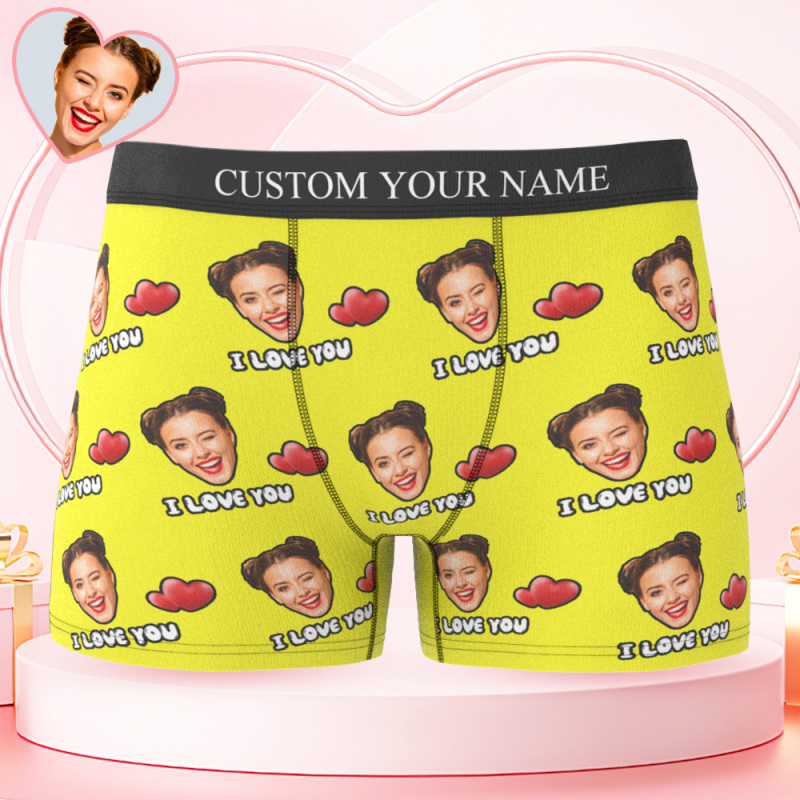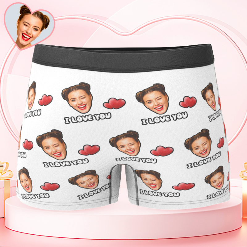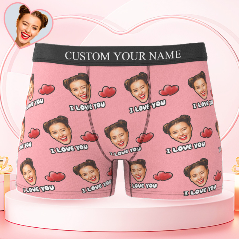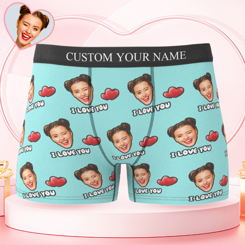 Custom Face Men's Boxer I Love You Style Underwear, Birthday Gifts for Husband, Waistband Text Boxer Gift