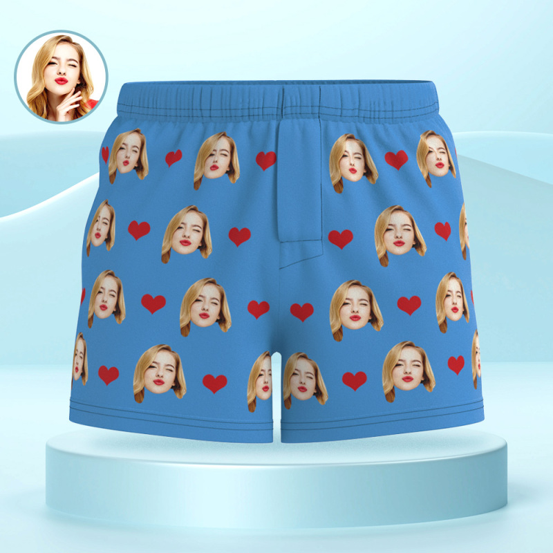 Custom Face Multicolor Boxer Shorts Love Hearts Personalized Photo Underwear Gift for Him